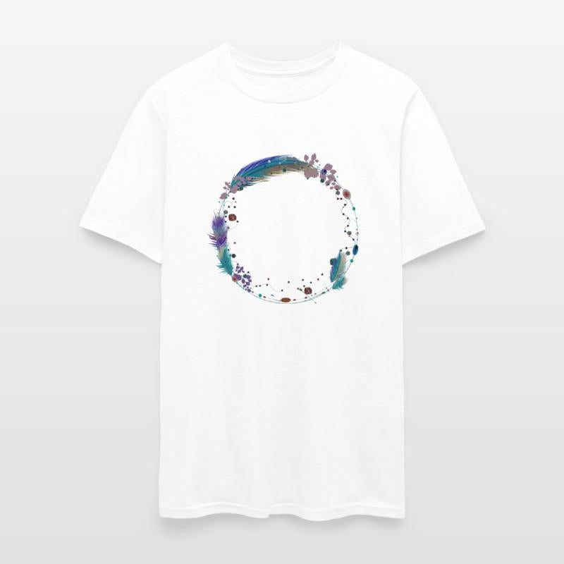 delicate frame of feathers and ethnic symbols