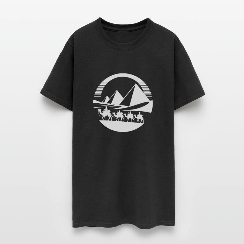 Desert Caravan With Pyramids In The Background