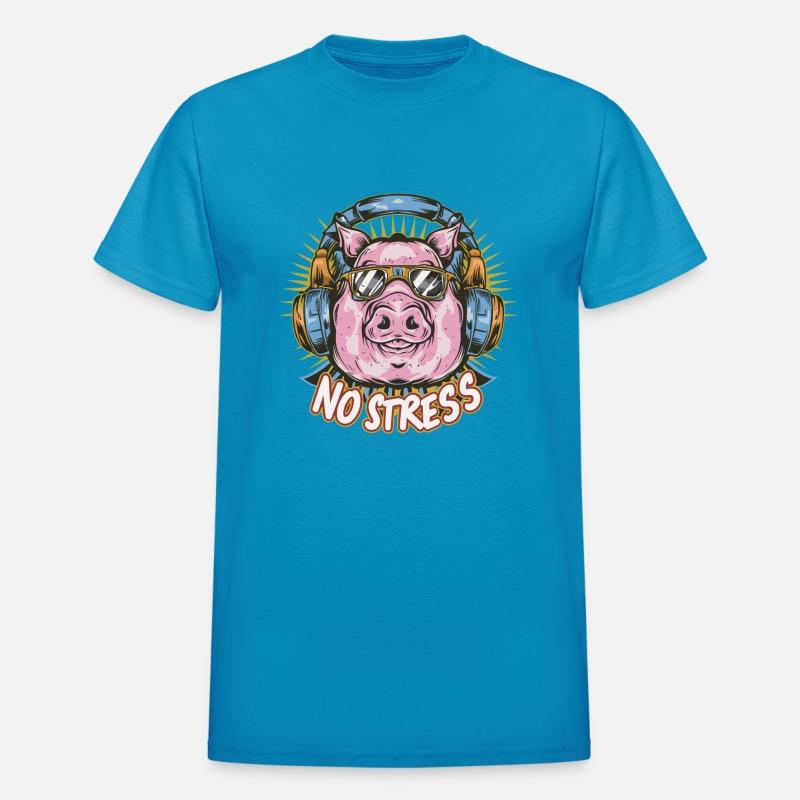 Funny Pig with Headphones Funny Saying NO STRESS