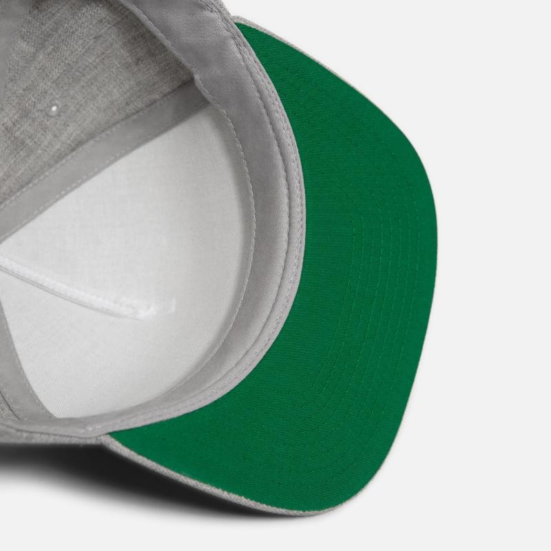 - Flat but flexible brim. Underside is green.